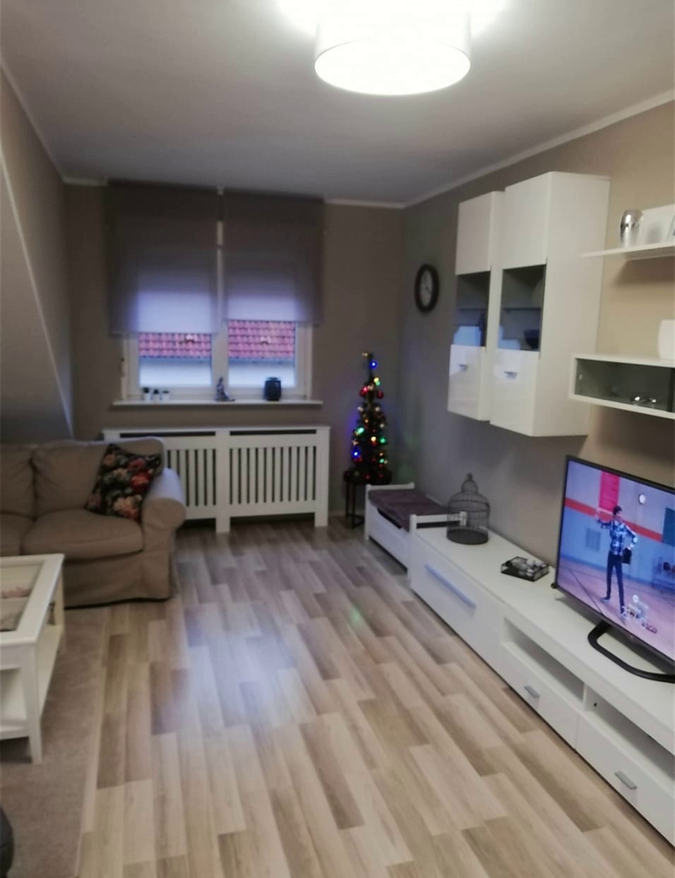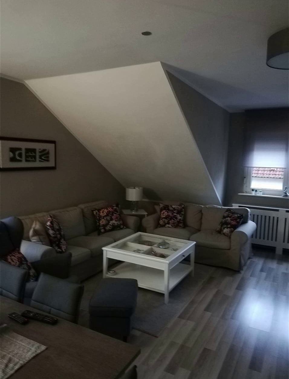 Im großzügigen Wohnbereich sorgt die leichte Dachschräge für eine gemütliche Atmosphäre.